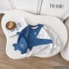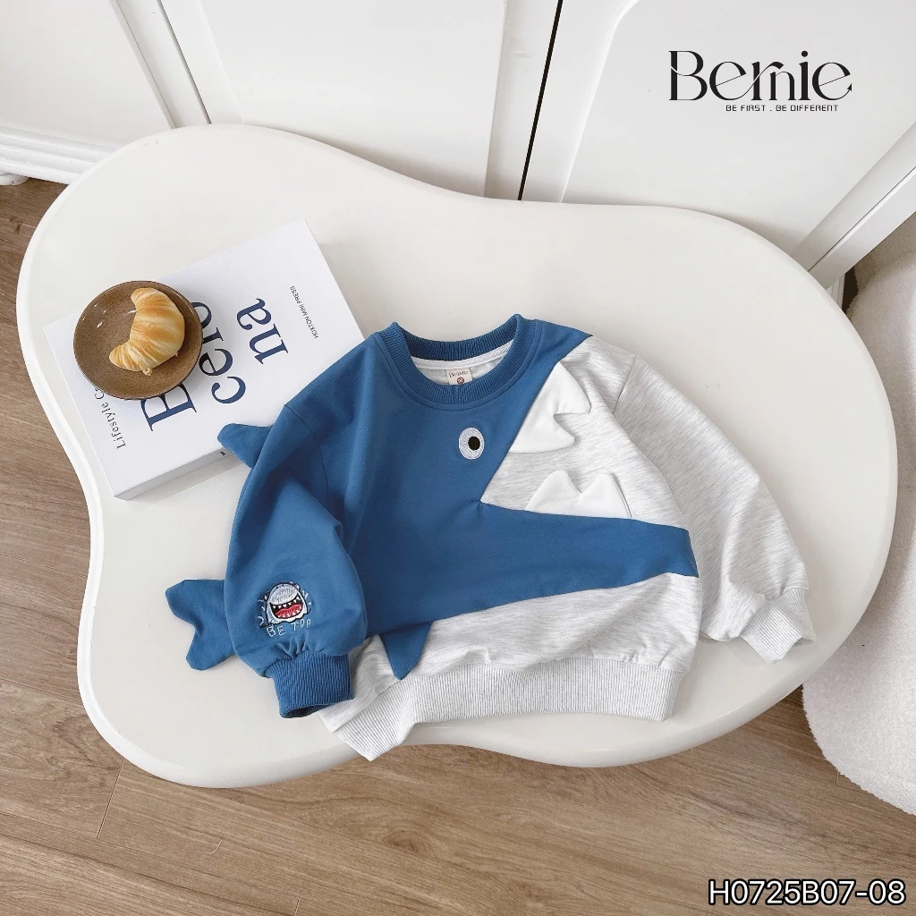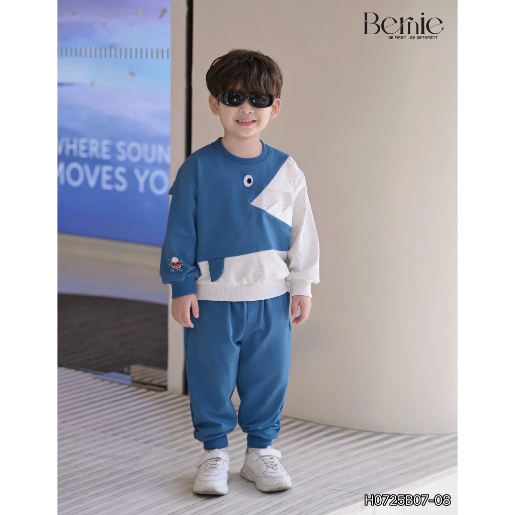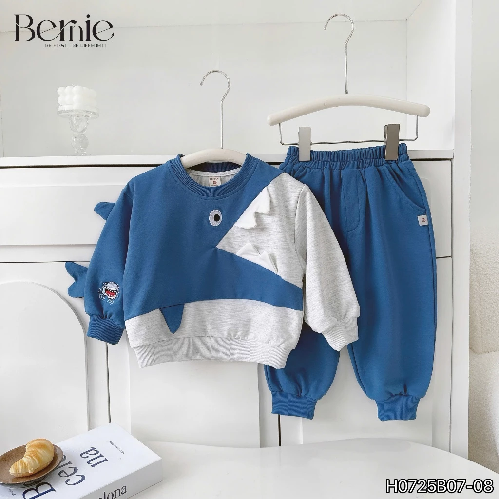 Bộ thu đông nỉ Bernie bé trai họa tiết cá mập màu xanh