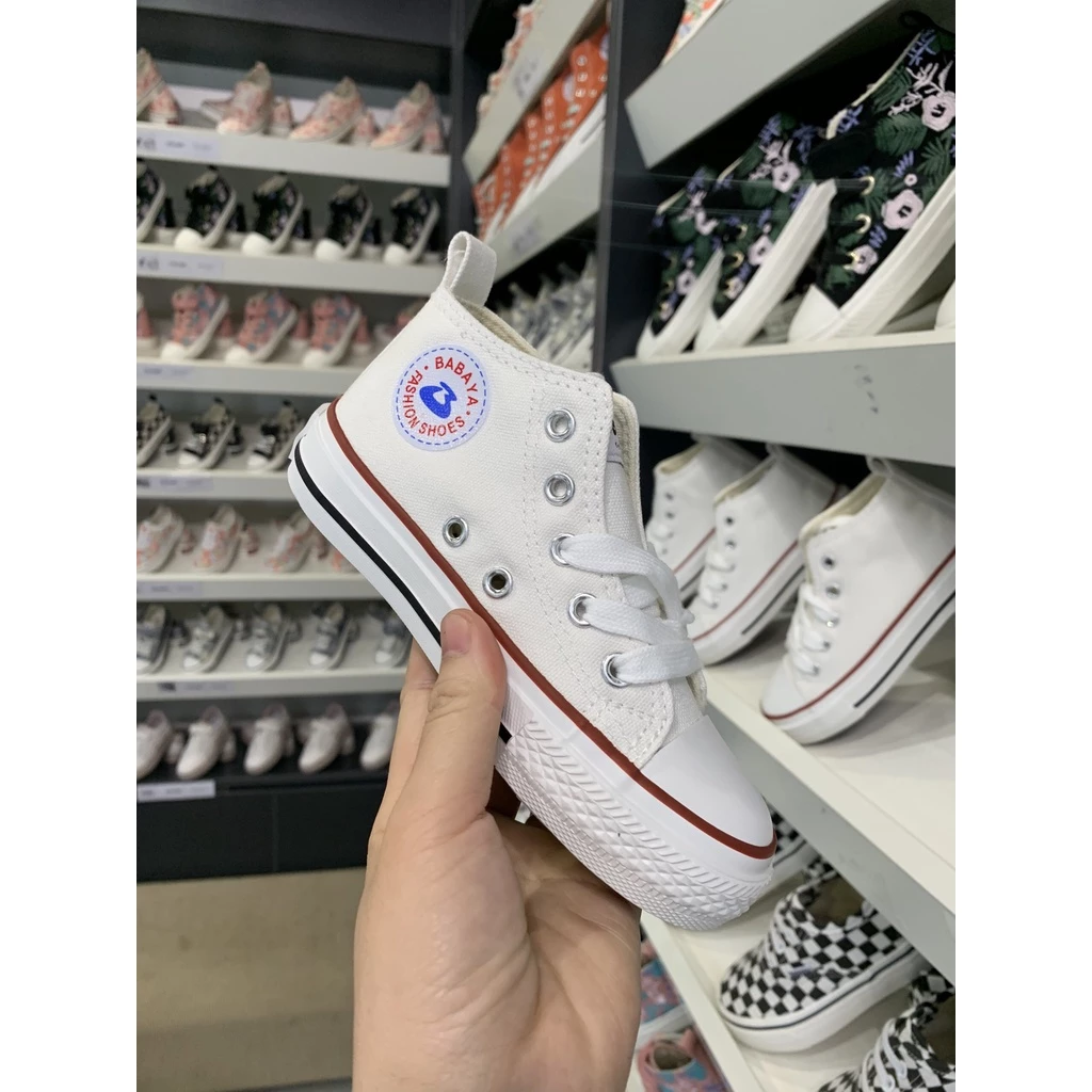 Giày Trẻ Em Thể Thao Cổ Cao Buộc Dây Màu Trắng Hiệu BABAYA 9063W